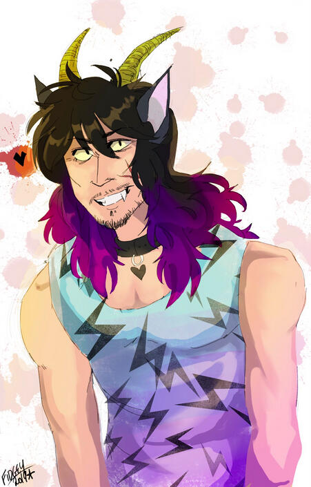 He's a very friendly and approachable person despite his shady and criminal background. Jack is charming and overly flirtatious, but he mostly just enjoys building up people's morale. He doesn't judge on appearances (since, again, that's a huge thing in his world) but rather a person's heart and soul. Although there are things about his past he is standoffish about, he mostly wants to be buddy-buddy with people, especially if that includes intimacy. Suppressants and sex are his way of escapism. They are easy to come by from his world (almost every drug is legal and the sex industry runs rampant.) He's forward with his advancements, but will respect someone if no mean no. He's also very passionate about music and fuels a lot of his passion into playing his guitar and making songs.